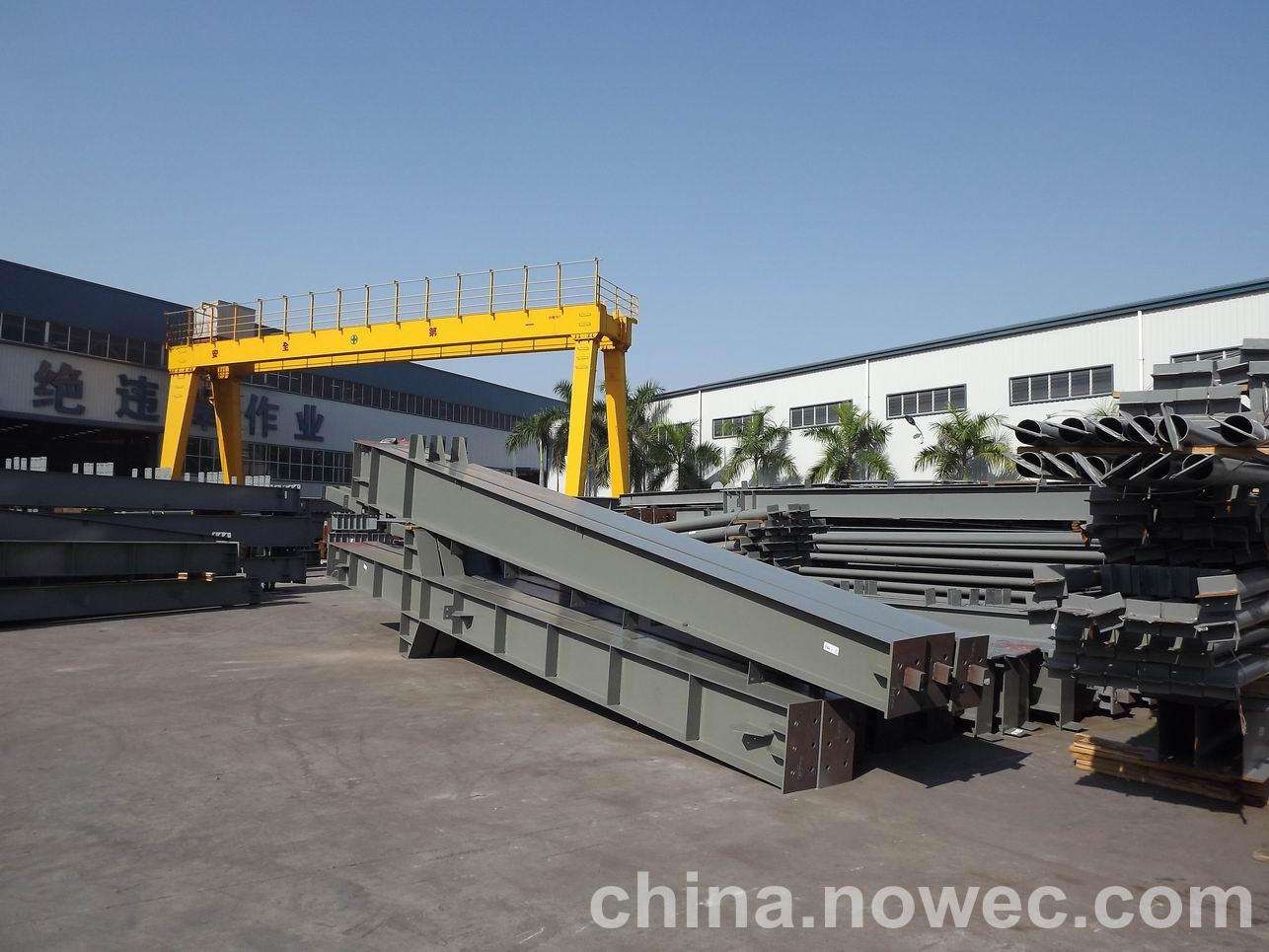 条状单元一般沿长跨方向分割,其宽度约为1~3个网格,其长度为l2或l2/2(l2为短跨跨距)。块状单元一般沿桦甸网架平面纵横向分割成矩形或正方形单元。每个单元的重量以现有起重机能胜任为准。条(块)与条(块)之间可以直接拼装,也可空一网格在高空拼装。由于条(块)状单元是在地面拼装,因而高空作业量较高空散装法大为减少,拼装支架也减少很多,又能充分利用现有起重设备,故较经济。这种安装方法适用于分割后网架的钢度和受力状况改变较小的各类中小型网架,如两向正交正放四角锥、正放抽空四角锥等网架。